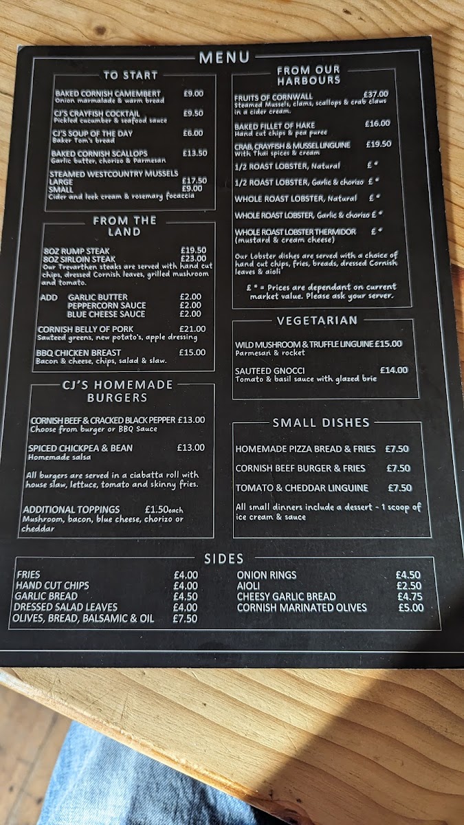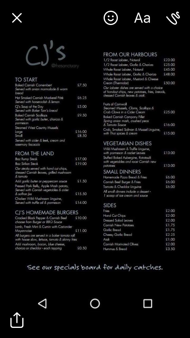 CJ's At The Sanctuary Menu