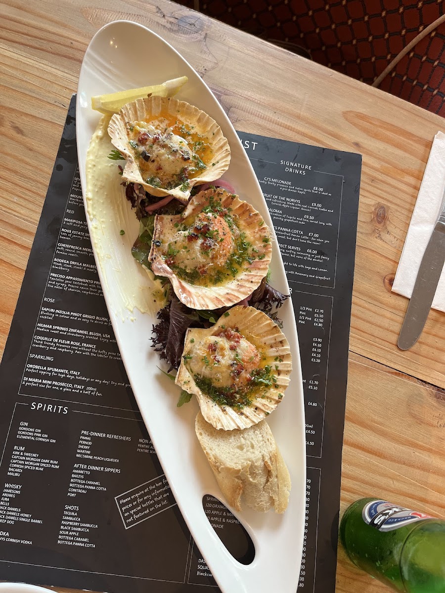 You’ll find a mix of hearty options like the Sunday roast or lamb roulade alongside fresh seafood favourites such as scallops with garlic sauce and the catch of the day. Light yet flavourful vegetarian dishes like wild mushroom & truffle linguine provide a thoughtful alternative. Seasonal sides like asparagus or baked camembert complement many of the main courses, adding to the sense of well-rounded, thoughtful dining.